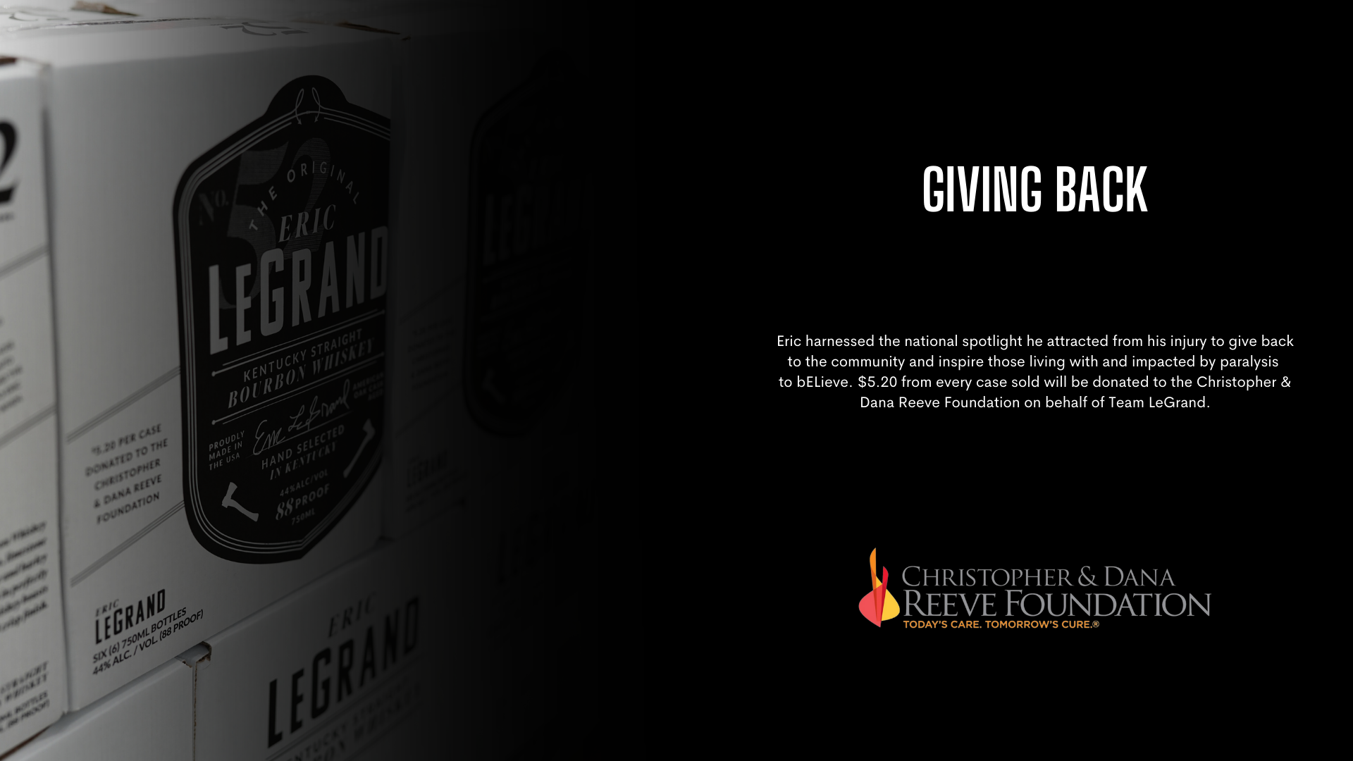 We bELieve in giving back to those impacted by paralysis, every case sold donates $5.20 to the Christopher & Dana Reeve Foundation.